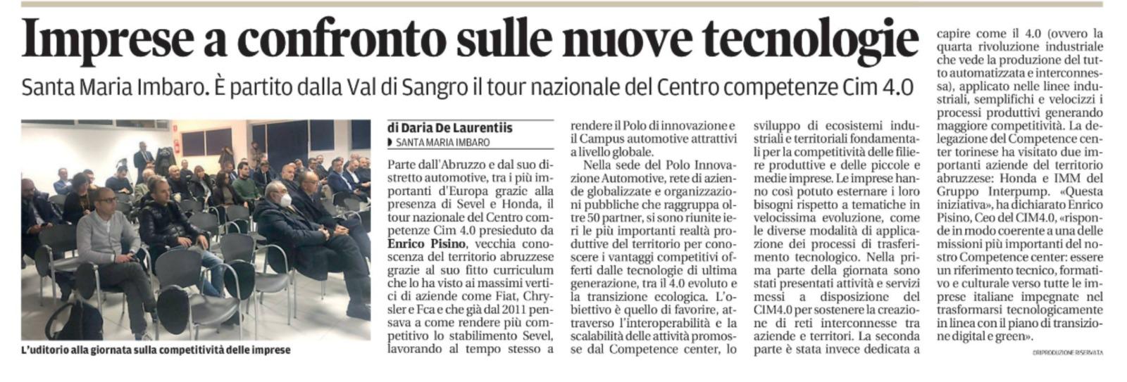 The National Competence Center CIM4.0 launches, starting from Abruzzo, the first Italian 4.0-driven Roadshow